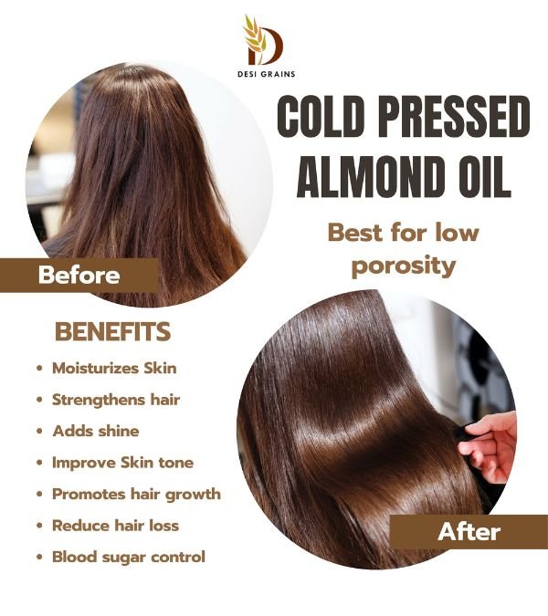 Cold-pressed almond oil is rich in vitamins and minerals that nourish the skin and hair. It’s a natural moisturizer that improves texture and elasticity, leaving your skin soft and glowing.