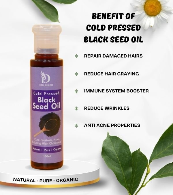 : Cold-pressed black seed oil is a powerful antioxidant that helps improve skin elasticity and supports overall wellness. It has anti-inflammatory properties that can soothe the skin.
