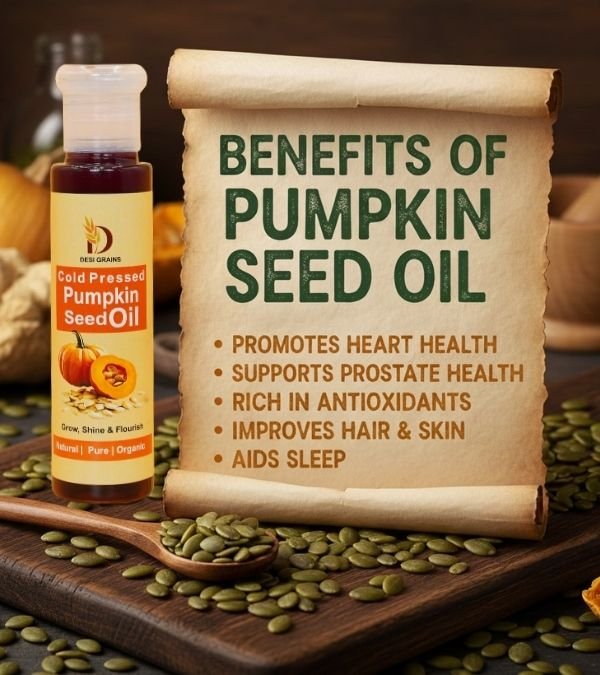 Cold-pressed pumpkin seed oil is rich in essential fatty acids and antioxidants. It supports hair growth and strengthens nails while promoting clear, youthful skin.