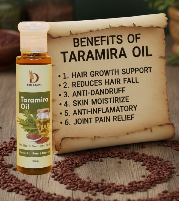 Cold-pressed taramira oil is an excellent remedy for joint pain, inflammation, and skin ailments. It has antifungal and antibacterial properties that promote overall skin and hair health.