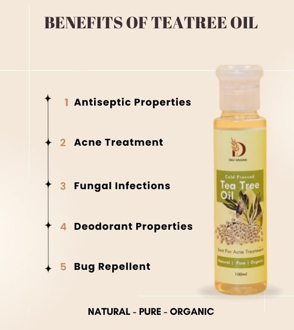 Cold-pressed tea tree oil is known for its antimicrobial and antifungal properties. It helps treat acne, dandruff, and various skin conditions while keeping your skin and scalp healthy.